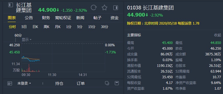 花旗表示,因应长江基建最新公告,决定下调对其今年纯利预测14.7亿元或14.9%,至84.14亿元(同比跌19.9%),并微降其明年纯利预测1%至91.89亿元。