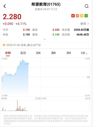 智通财经APP获悉,希望教育(01765)中期净利同比增长121.7%至3.33亿人民币,绩后获多家机构唱好,助力股价连续破顶,截至11时13分,涨4.11%,报价2.28港元,成交额4648.48万。
