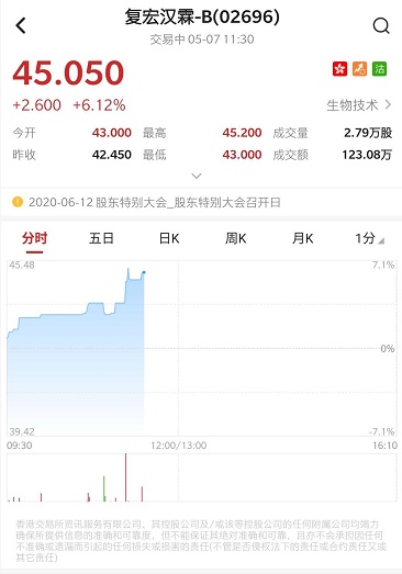 智通财经APP获悉,复宏汉霖-B(02696)公告,与三优生物、之江生物就合作开发全人源抗体药物用于单药或联用应对公共卫生事件签订《合作开发协议》。全球范围内尚无用于治疗公共卫生事件患者的全人源抗体药物获得上市批准。截至发稿,复宏汉霖-B涨6.12%,报45.05港元,成交额123.08万港元。