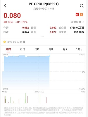 GROUP(08221)获机颖投资溢价84.55%提现金要约,今日复牌,股价无量上涨,截至13时43分,涨81.82%,报价0.08港元,成交额137.7万。