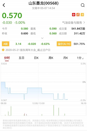 智通财经APP获悉,香港证监会在原讼法庭取得法庭命令,要求山东墨龙(00568)改组其审核委员会,并委任独立的外聘审计师检讨其内部监控及财务汇报程序。山东墨龙早前承认曾在六份业绩公告中虚假地夸大其财务状况。截至发稿,山东墨龙(00568)跌5%,报0.57港元,成交额311.42万港元。