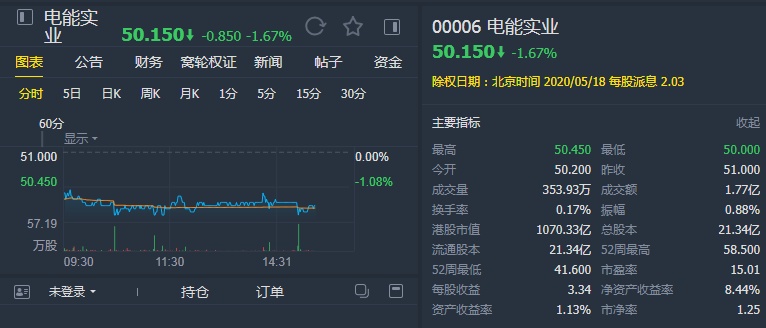 智通财经APP获悉,花旗发布报告称,下调今年电能实业(00006)纯利预期12.4%,以反映因英国政府未拟下调企业税率而造成8亿元的一次性非现金亏损,同时2021-2022年的盈利预期也下调0.8%,以反映更高的税率,目标价下调0.9%至56.5港元,予“买入”评级,认为其5.5厘股息率吸引。