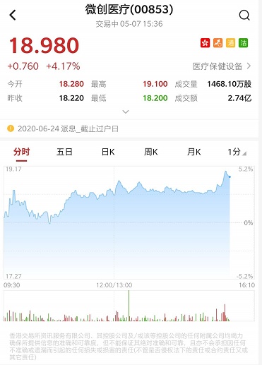 智通财经APP获悉,微创医疗(00853)发布公告,于2020年5月6日,公司与NDR订立正式协议,以带领对NDR进行800万新加坡元的战略性投资。公司承诺投资600万新加坡元,以换取NDR约20.9%的经扩大股权。截至发稿,微创医疗涨4.17%,报18.98港元,成交额2.74亿港元。