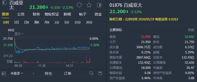 该行引述百威亚太管理层称,随着内地餐厅及夜场陆续重新营业,4月份销量跌幅已收窄至17%,渠道存货处于健康水平等;韩国业务于3月底开始也出现改善。该行补充,即使预期百威亚太业务短期内处困境,但仍看好其长线前景,相信其盈利于2022年会完全复苏,维持其“增持”评级,但目标价由31港元降至29港元。