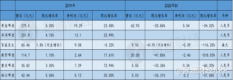 在此背景下,各大啤酒行业上市公司业绩在2020年一季度大幅下滑。