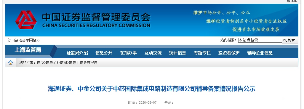 智通财经APP获悉,上海证监局官网信息显示,中芯国际(00981)已于5月6日签署上市辅导协议,保荐及辅导机构为海通证券、中金公司。辅导机构拟自向上海证监局报送辅导备案材料后开始辅导工作。
