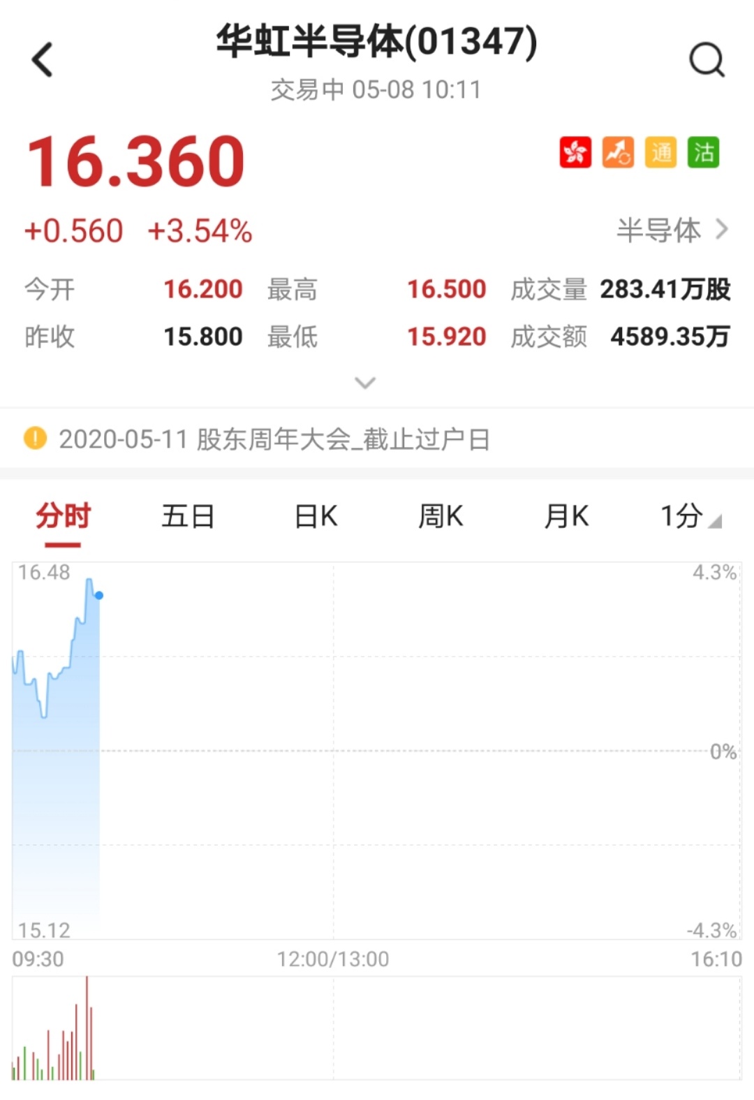 智通财经APP获悉,高盛发布报告称,重申华虹半导体(01347)目标价23.4港元及“买入”评级,该股早盘涨超4%,突破多条均线。截至10时11分,涨3.54%,报价16.36港元,成交额4589.35万。