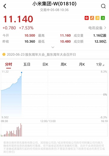 智通财经APP获悉,五一期间,小米公司(01810)举办超百家门店同期开业活动。小米之家客流约360万,虽比去年同期略有下滑,但销售额同比去年五一增长了13%,日均销售环比四月日均销售额全面翻番。自公共卫生事件后,小米零售在首个小长假迎来了线下经济的整体复苏。截至发稿,小米集团涨7.53%,报11.14港元,成交额12.71亿港元。