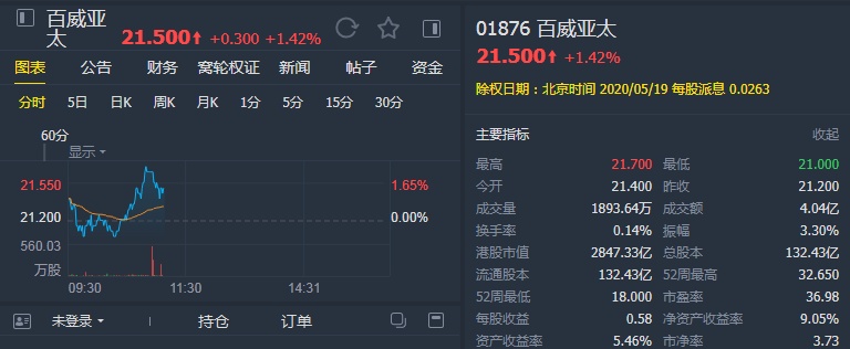 该行指出公司平均销售单价升3%,而内地方面则升2%,如撇除渠道去库存的因素则升6%,主要因为公司继续产品高端化进程,而其创新营销策略及多元化的产品组合等,配合到店渠道重开,预计将带动公司于今年下半年全面复苏,但香港同业的竞争仍然是主要风险,该行认为他们也正投资高端产品,但喜力最近推出味道较淡的星银啤酒估计也可带动喜力在内地的销量。