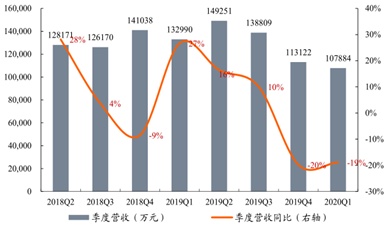 赣锋锂业4月29日给出了一季度业绩答卷,其营收、利润同步大幅下滑的态势也验证了此前担忧。智通财经APP了解到,因公共卫生事件的爆发影响了赣锋锂业部分产能,从而导致2020年一季度产量和销量较上年同期下降,再加上价格方面,一季度国内电池级碳酸锂均价为每吨4.89万元人民币(单位下同),同比下跌近38%,电池级氢氧化锂均价为每吨5.71万元,同比下跌近46%,量价齐跌状态下公司一季度营收仅录得10.79亿元,同比下滑18.9%。