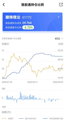综上而言,虽然一季度业绩表现十分糟糕,但是中长期看,赣锋锂业业绩依旧不需要担忧。公司也在一季度报告中表示,预计2020年上半年实现归母净利润1.4-2亿元,同比下滑 53%-32%,刨除一季度部分后,二季度归母净利为 1.3-1.9 亿,同比增幅将在207%-347%之间。这或许就是为什么港股通南下资金,会在赣锋锂业大幅回调期间大手笔扫货,截止目前赣锋锂业港股通持仓比例已经由年初的33%升至52%,位列南下资金持仓比例榜首。
