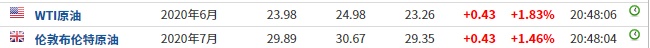 截至发稿,WTI原油涨1.83%,报23.98美元/桶。布伦特原油涨1.46%,报29.89美元/桶。