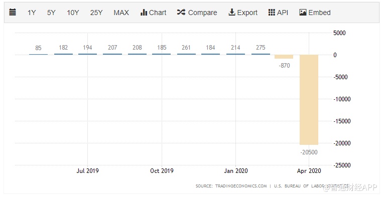 智通财经APP获悉,5月8日,美国劳工部公布4月非农数据,显示4月季调后非农就业人口减少2050万,创纪录最大降幅;4月失业率为14.7%,创纪录新高。