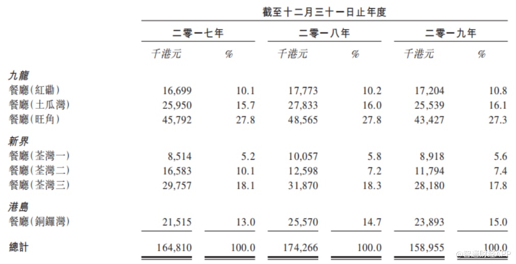 招股书显示,自2011年成立以来至2016年,公司在九龙、新界和港岛开设7间餐厅,此后再无开设新餐厅。