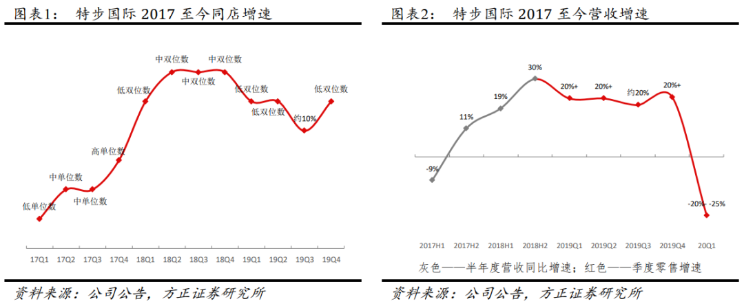 ②渠道运营更扁平化,门店运营效率提升。2018年以来门店数触底反弹,门店面积、店效、提升明显,2019年平均月店效为14-15万;发力线上,打通O2O,持续进行线上转型,推动产品线上线下同款同价,2019年线上仍维持高成长,营收占比超过20%。
