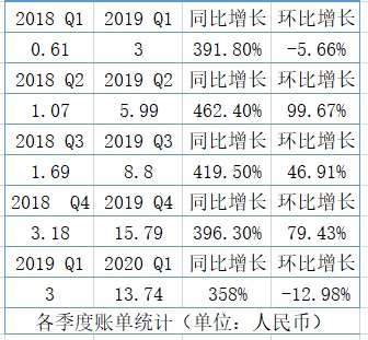 账单的变化情况与上述的学生变化相吻合。2020年第一季度时,总账单为13.74亿元,同比大增358%,环比则缩减12.98%,环比降低的节奏与2019年第一季度时保持一致,但超出7个点的降幅便是因为课程的免费和竞争的加大。