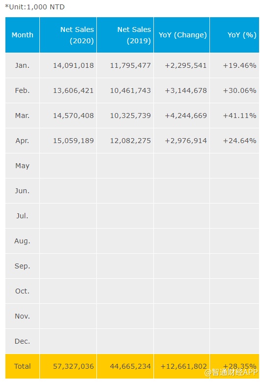 智通财经APP获悉,周一(5月11日),集成电路公司联华电子(UMC.US,简称“联电”)公布了2020年4月月度销售额。