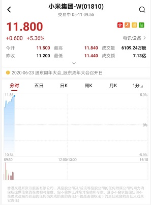 智通财经APP获悉,小米集团-W(01810)获星展上调目标价4%至13.3港元,维持“买入”评级。该股延续升势,突破所有均线,截至9时55分,涨5.36%,报价11.8港元,成交额7.13亿。