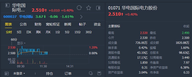 该行下调华电国际股份评级,由“跑赢大市”降至“持有”,目标价由2.9港元下调至2.7港元,但上调集团今明两年每股盈利预测3%至6%,以反映燃料成本较低的假设。