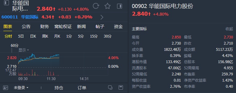 该行预期,内地电力需求情况在第二季可见改善,而燃料成本也将进一步下降。不过,华能股价3月底开始已上升22%,有关正面因素或已在股价上反映。