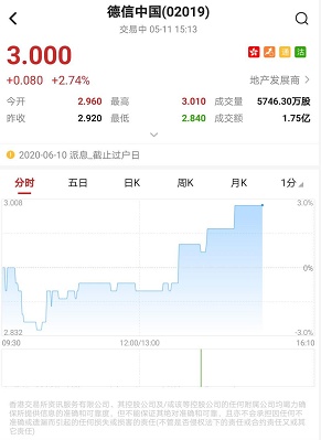 港股异动︱午后现一宗大手成交涉资1.72亿 德信中国(02019)现涨2.7%