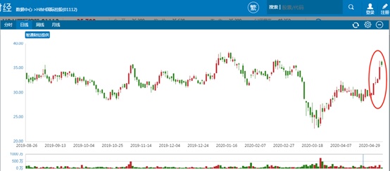 受此消息影响,原本5月8日早盘股价几乎没有成交量和上涨的H&H国际控股,午后开盘遭遇资金疯狂扫货,短短一个小时涌入3369.6万港元资金,涨幅从0.3%推至最大的11.45%,当日77853.1万港元资金成交的224.3万股成交量,较前一个交易日扩大1.6倍多,截止收盘涨幅仍有7.48%。5月11日公司股价继续录得2.27%的上涨,36港元股价已经回到国际公共卫生事件事件影响前的平台。