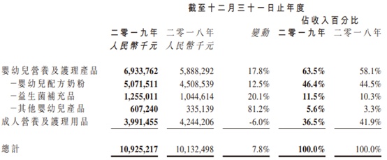 2019年营收仅录得小幅增长,经调整净利润更是同比下滑近二成。智通财经APP了解到,由于国内出生率日渐下降,中国婴幼儿配方奶粉市场竞争激烈,公司2019年12个月市场增长大幅放缓至7.6%,好在高端及超高端分部增长较快,公司营收占比最大的婴幼儿配方奶粉贡献收入同比12.5%至50.72亿元,再加上益生菌补充品和其它婴幼儿产品同比分别增长20.1%、81.2%,公司婴幼儿营养及护理产品业务营收同比增长17.8%至69.34亿元。不过由于国内新电子商务法规影响代购商减少存货及交易,导致澳新市场的销售额下降,公司成人营养及护理用品营收还录得6%的同比下滑至39.91亿元,公司最终实现营收109.25亿元,同比小幅增长7.8%。