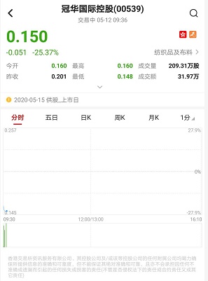 智通财经APP获悉,冠华国际控股(00539)拟折让30.35%按“1供2”供股,净筹2.12亿港元。该股早盘无量下挫,截至9时36分,跌25.37%,报价0.15港元,成交额31.97万。