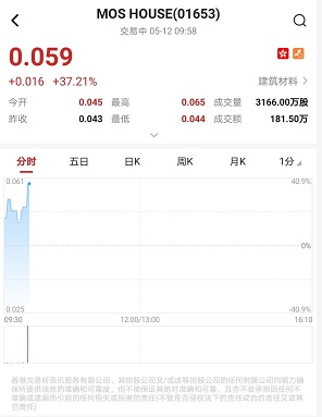 HOUSE(01653)拟配售最多4亿股,净筹1568万港元,早盘股价无量上涨,截至9时58分,涨37.21%,报价0.059港元,成交额181.5万。