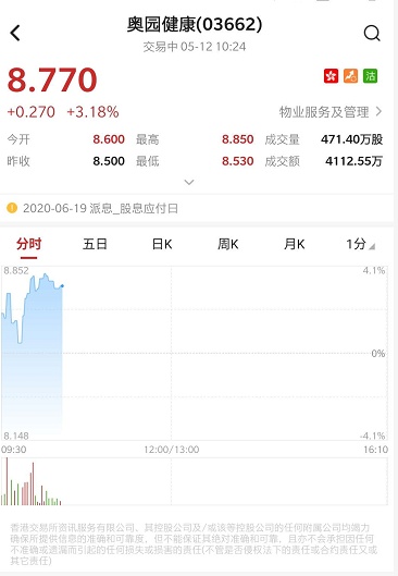 智通财经APP获悉,奥园健康(03662)发布公告,间接全资附属公司广州奥园物业服务有限公司拟以现金代价人民币3700万元收购宁波宏建物业服务有限公司65%股权。目标公司在管项目合共有34个,总合约建筑面积约为2,413,000平方米。受消息影响,奥园健康早盘涨超4%,截至发稿,涨3.06%,报8.76港元,成交额4125.7万港元。