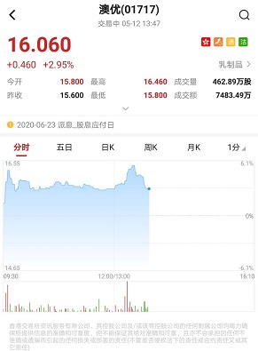 智通财经APP获悉,澳优(01717)获花旗首予“买入”评级,目标价看高至18.5港元。该股午后一度涨超5%,创10个月新高,截至13时47分,涨2.95%,报价16.06港元,成交额7483.49万。