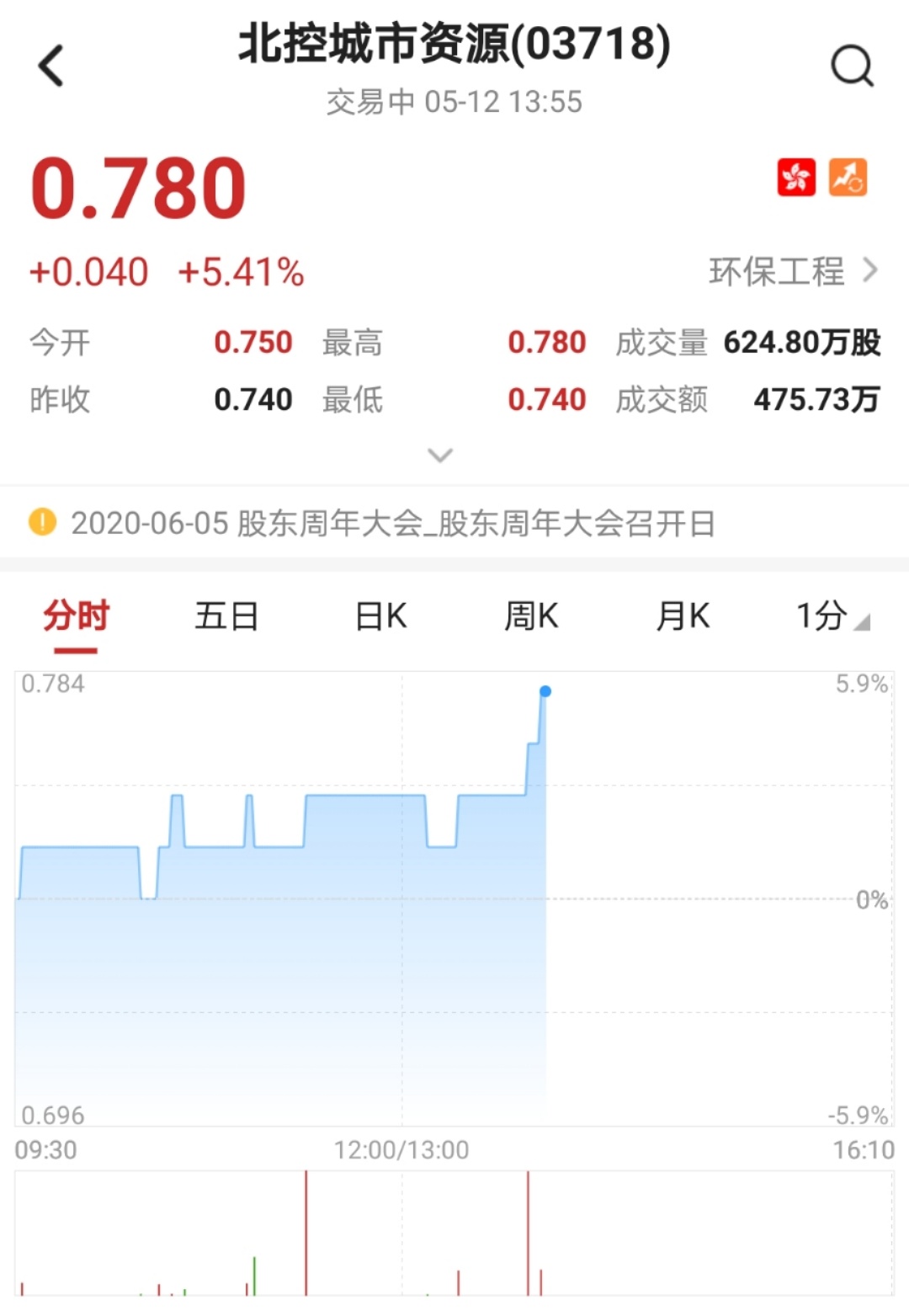 该股早盘涨超5%。突破所有均线。截至13时55分,涨5.41%,报价0.78港元,成交额475.73万。