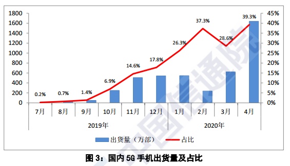 数据显示,由于一季度手机出货量大幅下降,今年1-4月,国内手机市场总体出货量累计9068.1万部,同比下降20.1%。 同期,5G手机累计出货量3044.1万部,上市机型累计65款,占比分别达到33.6%和47.4%。