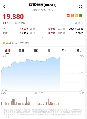 智通财经APP获悉,阿里健康(00241)午后涨幅扩大逾6%,高见19.98港元,逼近历史新高。截至14时30分,涨6.31%,报价19.88港元,成交额7.6亿港元。