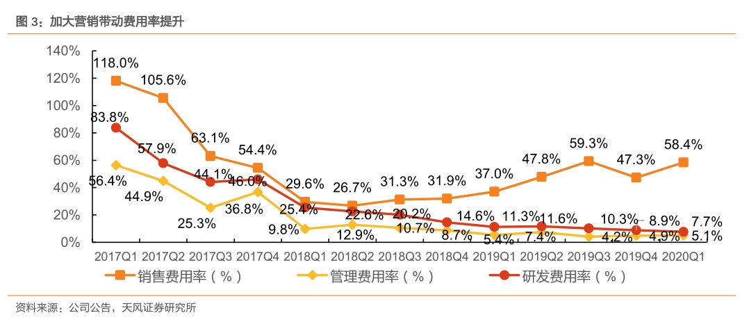 销售费用率环比提升:销售费用同比增长661.0%至7.57亿元,主要是更高的市场营销费用以拓展客户基数,强化品牌,同时增加了销售员工的补贴,以及公共卫生事件期间为获客的免费课程推广费用。
