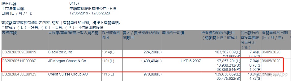 智通财经APP获悉,联交所最新资料显示,5月6日,摩根大通增持中联重科(01157)148.94万股,每股作价6.2997港元,总金额约为938.28万港元。增持后最新持股数目约为9785.72万股,最新持股比例为7.04%。