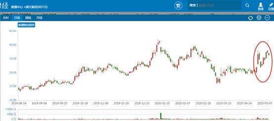 受此消息刺激,公司股价于4月28日迎来一波强势放量冲涨,当天最大涨幅达到了18.78%,收盘涨幅定格在14.4%,全天共计6.55亿港元资金涌入成交1807.8万股,是前一个交易日量能的3.78倍。不过随后由于2019年启用的合同在近期收到了大量的反馈和批评,引发了一场不小的风波,公司股价在随后两个交易日出现回调。