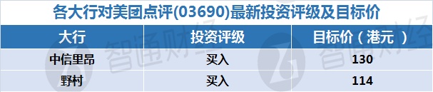 三、各大行对美团点评(03690)最新投资评级及目标价