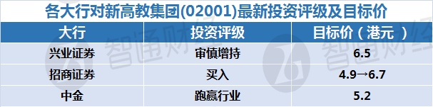 四、各大行对新高教集团(02001)最新投资评级及目标价