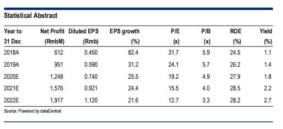 此外,该公司还收购了配方羊奶粉中国业务和高端牛奶事务群的管理层少数股权后,股份进一步扩大,预计2019-2022年每股盈利将以24%的复合年增长率增长。