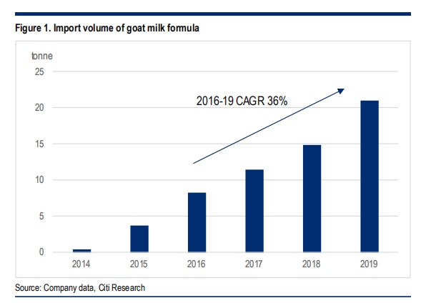 自2015年以来,羊奶粉一直是婴幼儿行业中一个快速增长的细分市场。它最初是配方牛奶粉的补充,但由于其特殊的营养价值(小分子且易于消化),现在正成为高端替代品。分析认为配方羊奶粉市场地位的变化归因于婴幼儿市场的快速换购趋势和成功的客户教育。根据凯度消费指数的数据,2019年中国羊奶粉的销售额增长了42%。