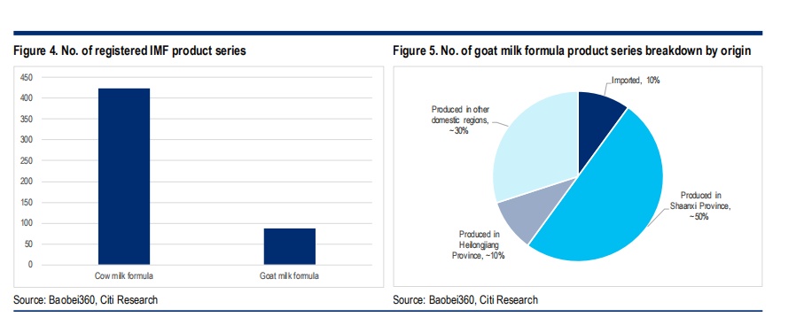 市场认可度的提高和配方羊奶食品领域的增长活力吸引了许多新进入者。目前,在53个许可制造商生产的约90种注册的配方羊奶产品中, 有10%是进口产品。国内产品主要集中在陕西省,该省生产数量占约50%。黑龙江是第二大生产省份,约占10%。