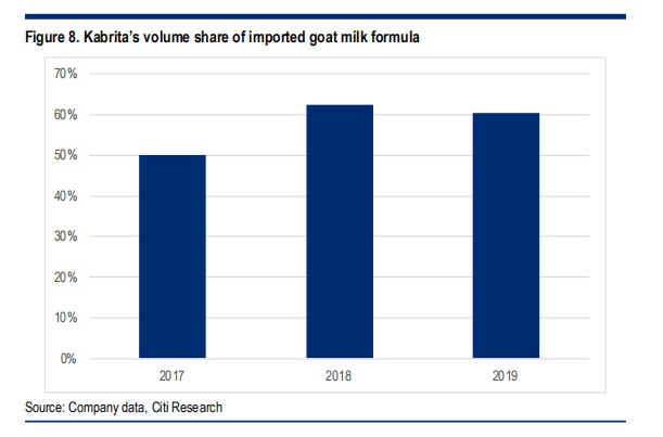 通过这些努力,羊奶粉的市场认可度和Kabrita的品牌知名度都在飞涨。尽管新进入者和竞争不断增加, Kabrita仍继续在高端配方羊奶粉市场中占据主导地位,2019年占配方羊奶粉进口总量的60%以上。