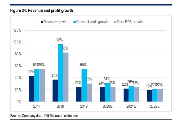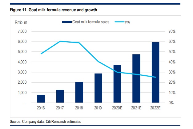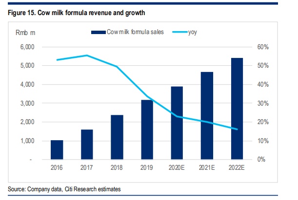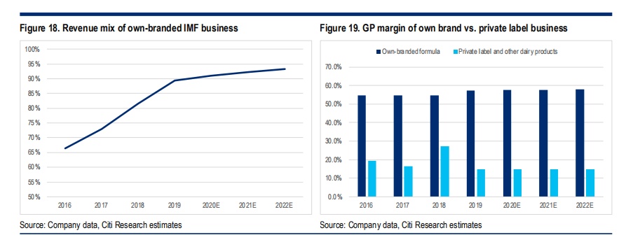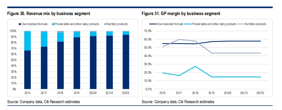 对于其他事业群,该公司计划在这些之间重新进行品牌组合,从而释放增长潜力。花旗银行预计2019-2022年整体奶粉业务复合年增长率将达到20%。