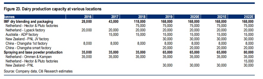 澳优在荷兰、澳大利亚和中国拥有九家乳制品生产厂,其中有五家是在2017-19年通过并购和自建而增设的。花旗银行认为,自2017年以来,对生产工厂的大量投资,反映了公司在2017年婴幼儿配方奶粉注册要求实施的背景下,对整个生产过程实施控制的战略方向。