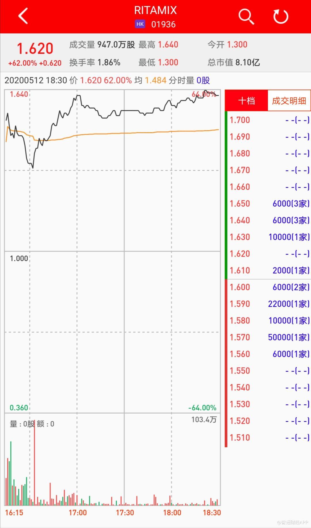 新股暗盘 | RITAMIX(01936)暗盘收涨62%,每手赚1240港元