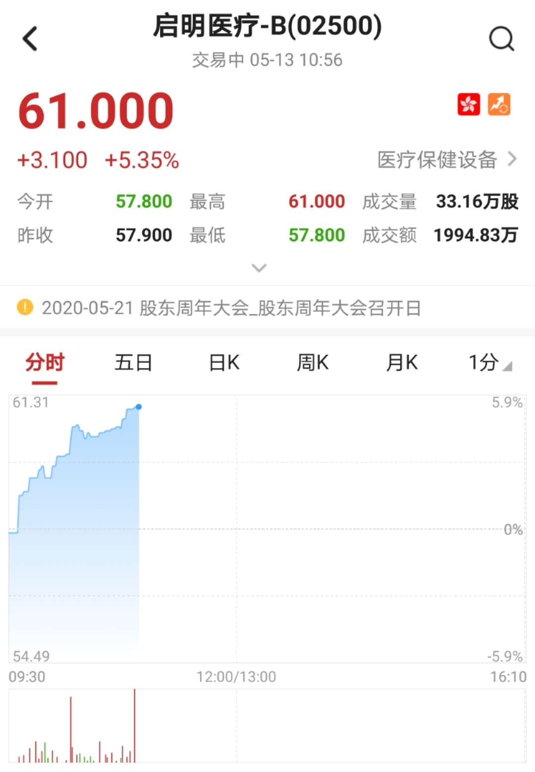 根据联交所最新权益披露资料显示,2020年5月4日,启明医疗-B获高盛在场内以每股均价52.15港元增持好仓126.65万股,涉资约6604.8万港元。