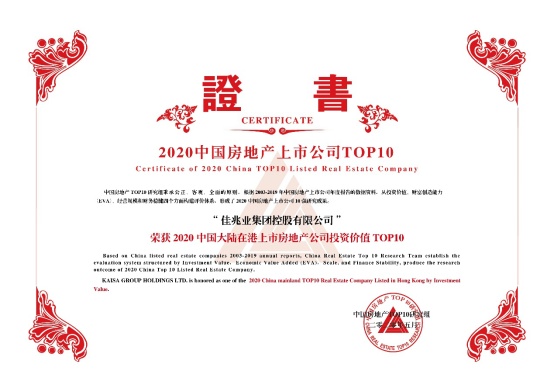 5月13日,由中国指数研究院、中国房地产TOP10研究组主办的“2020年中国房地产上市公司研究成果发布会”在线上举行。凭借领先的盈利能力、可持续的成长能力以及良好的运营效率,佳兆业集团(01638)获评 “2020中国大陆在港上市房地产公司投资价值TOP10”第4位。
