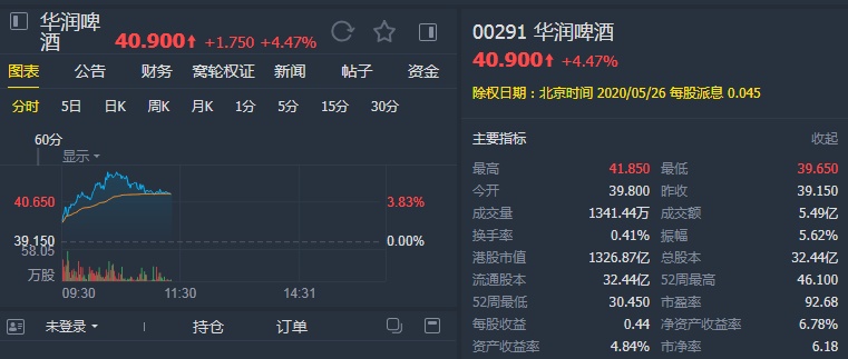该行表示,日前华润啤酒行政总裁增持股份也显示出管理层信心,故大致维持其盈利预测,目标价则由45.6港元上调至49港元,重申“买入”评级。