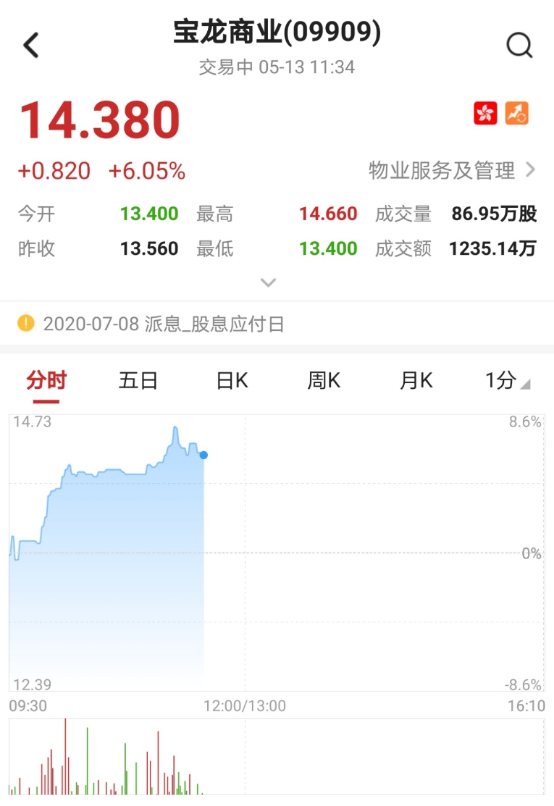 智通财经APP获悉,指数编制公司MSCI明晟公布半年度指数成分股检讨结果显示,宝龙商业(09909)将纳入中国小型股指数,变动将于5月29日收市后生效。该股盘中一度涨近8%,突破所有均线,创历史新高。截至11时34分,涨6.05%,报价14.38港元,成交额1235.14万。
